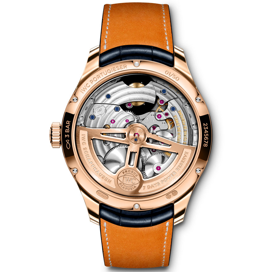 自動巻き(Cal.51950)。54石。1万9800振動/時。パワーリザーブ約168時間。18Kアーマーゴールド(直径 45mm、厚さ 15.3mm)。3気圧防水。世界限定50本。ブティック限定。1188万円(税別)。他にRef.IW504505(プラチナ、世界限定50本、1374万円)がラインナップ。