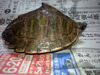 150×90㎝の水槽で、1/3くらいを陸場にして飼育すれば、こういうミスも防げるんですが、家のスペースの関係で、それが出来ません。