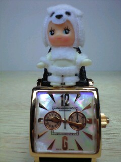 昨日のブログで、さらっとだけ出しました、ロジェのゴールデンスクエア・クロノ(34×34ミリ)の青色の白蝶貝文字盤です。