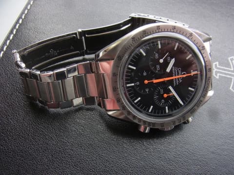 シャープな印象のカスタムですね。全然印象が違いますね。MarkIIのクロノグラフ針の赤、それとベゼル、ベゼルはけっこうスピマスの印象を変えますね。