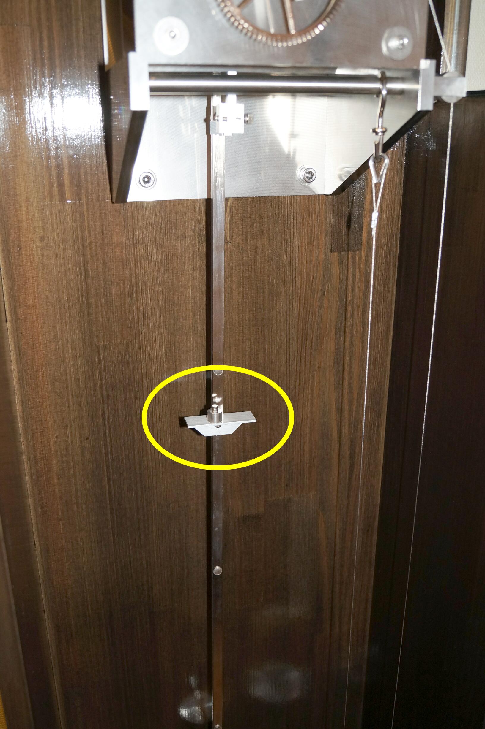 簡単に言うと、竿中央のトレイに錘を載せると、振子系の重心が僅かに上に移動するため歩度が進みに移行する筈です。