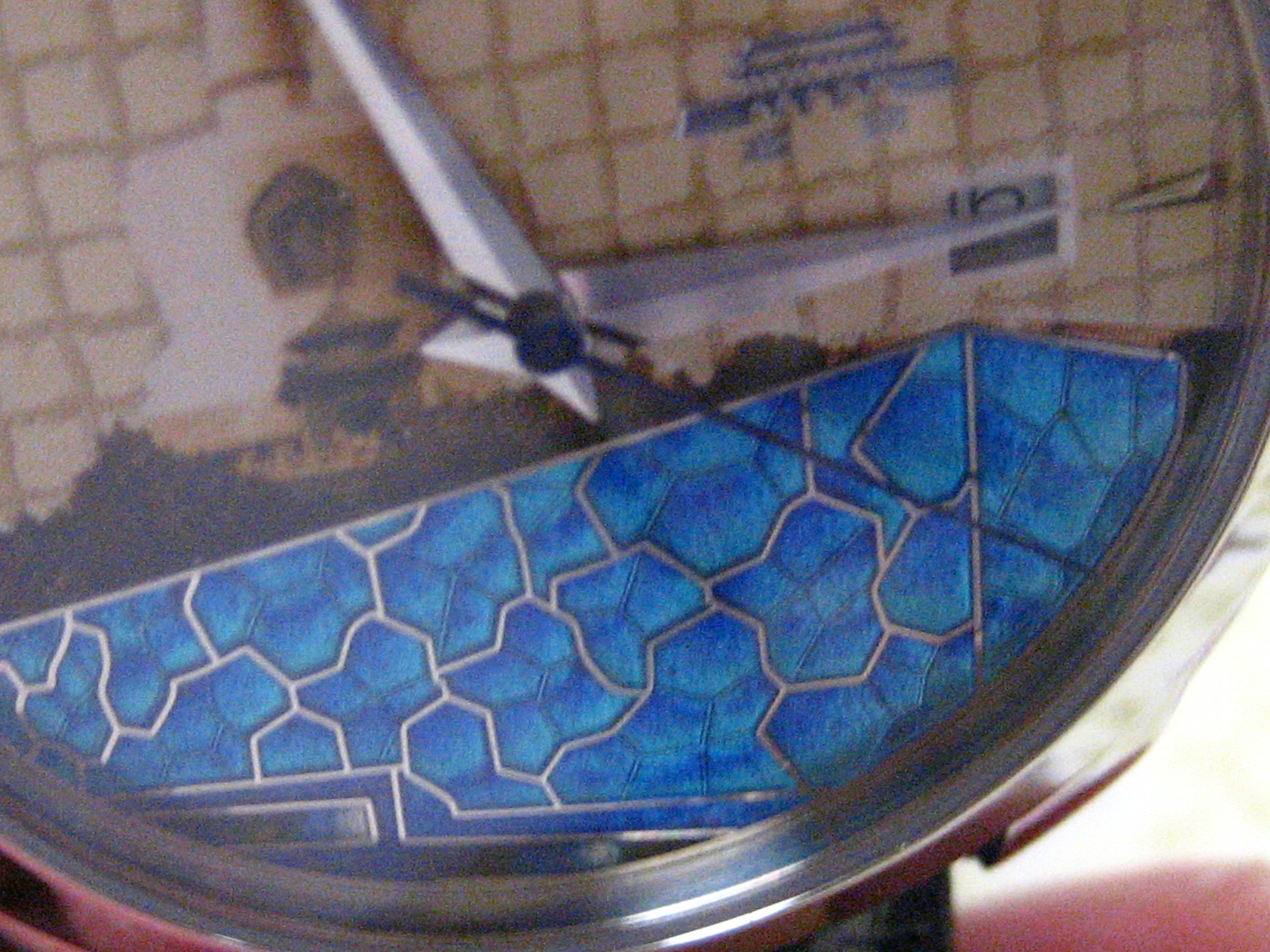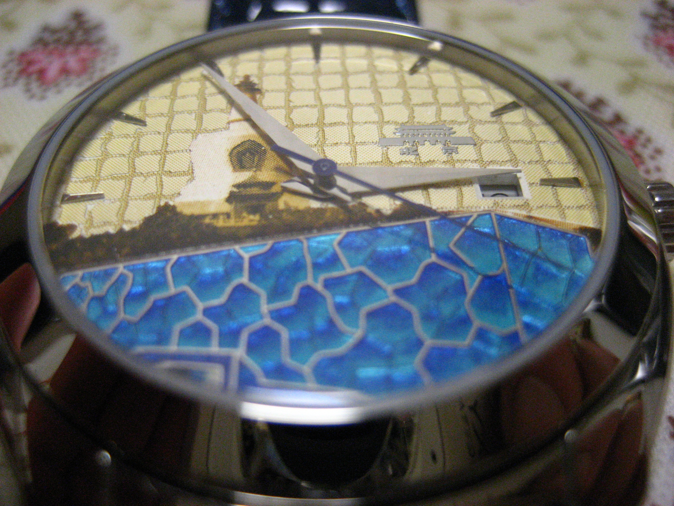 アンクル受けにペルラージュも施してあり、外周はなんという模様か判りませんが、ダマスコンの様に光の反射で表情が変わります。