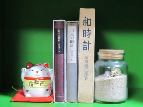 上掲写真は右から塚田泰三郎著『和時計』(1936年・東峰書院)、山口隆二著の初版『日本の時計』(1932年・日本評論社)とその改訂版『日本の時計』(1950年・日本評論社)です。『和時計』も『日本の時計』も和時計概論書の古典として双璧をなしており、海外の和時計研究家の参考書にもなっています(但し、いずれの書籍も全文を英訳したものは出版されていません。改訂版『日本の時計』には、英語・フランス語・スペイン語による簡単な和時計概論が付けられ、掲載写真の日本語のキャプションに関しては、すべて英語のキャプションが併記されています。ちなみに『日本の時計』の改訂版は、私、ごく最近購入しました)