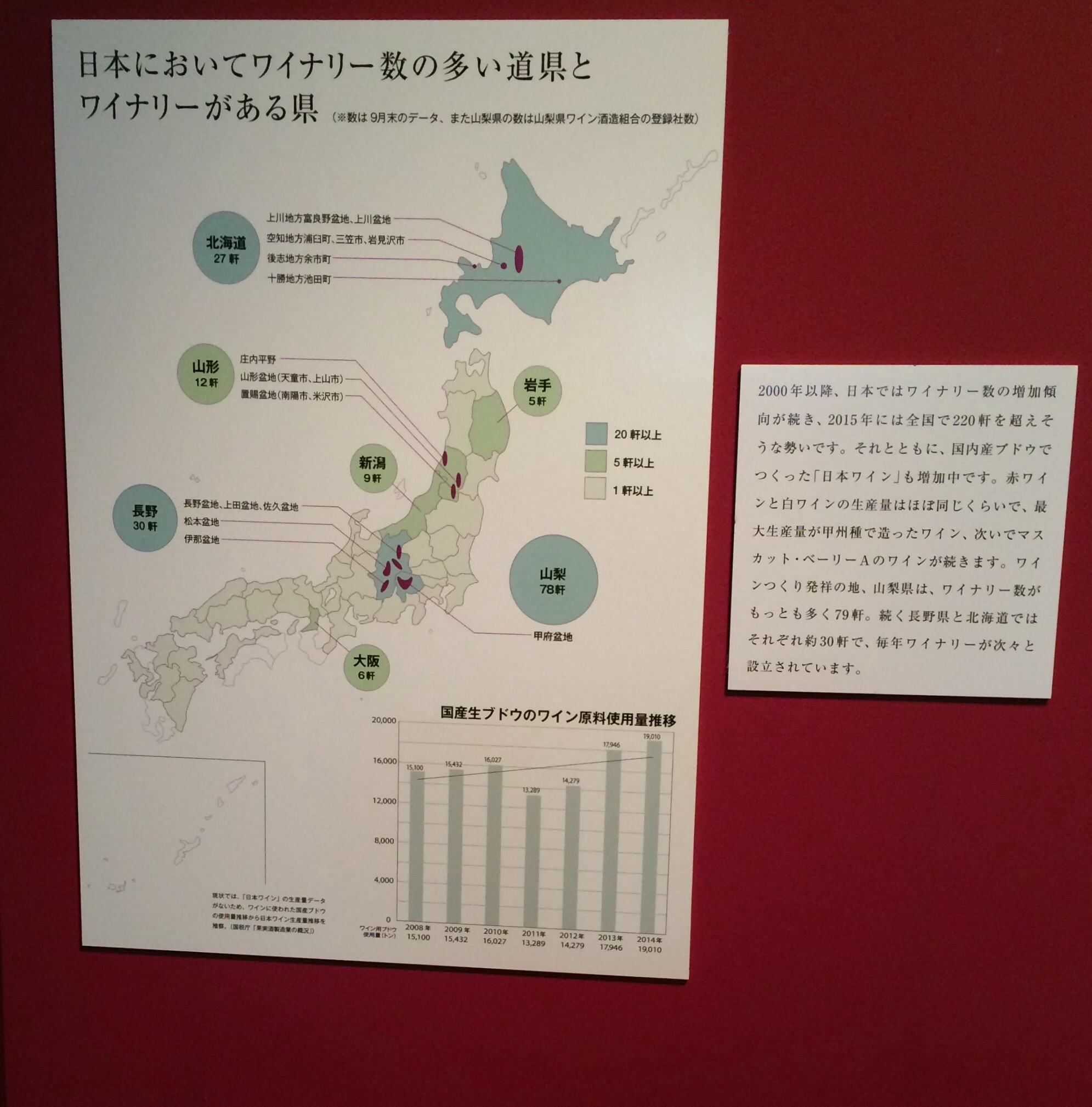ロンドン、ボルドー、ブルゴーニュ、甲府のワイン博物館の経験からすると「展示品少なすぎっ!」とか「神秘的な麺、割愛し過ぎ」とかいろいろあります。