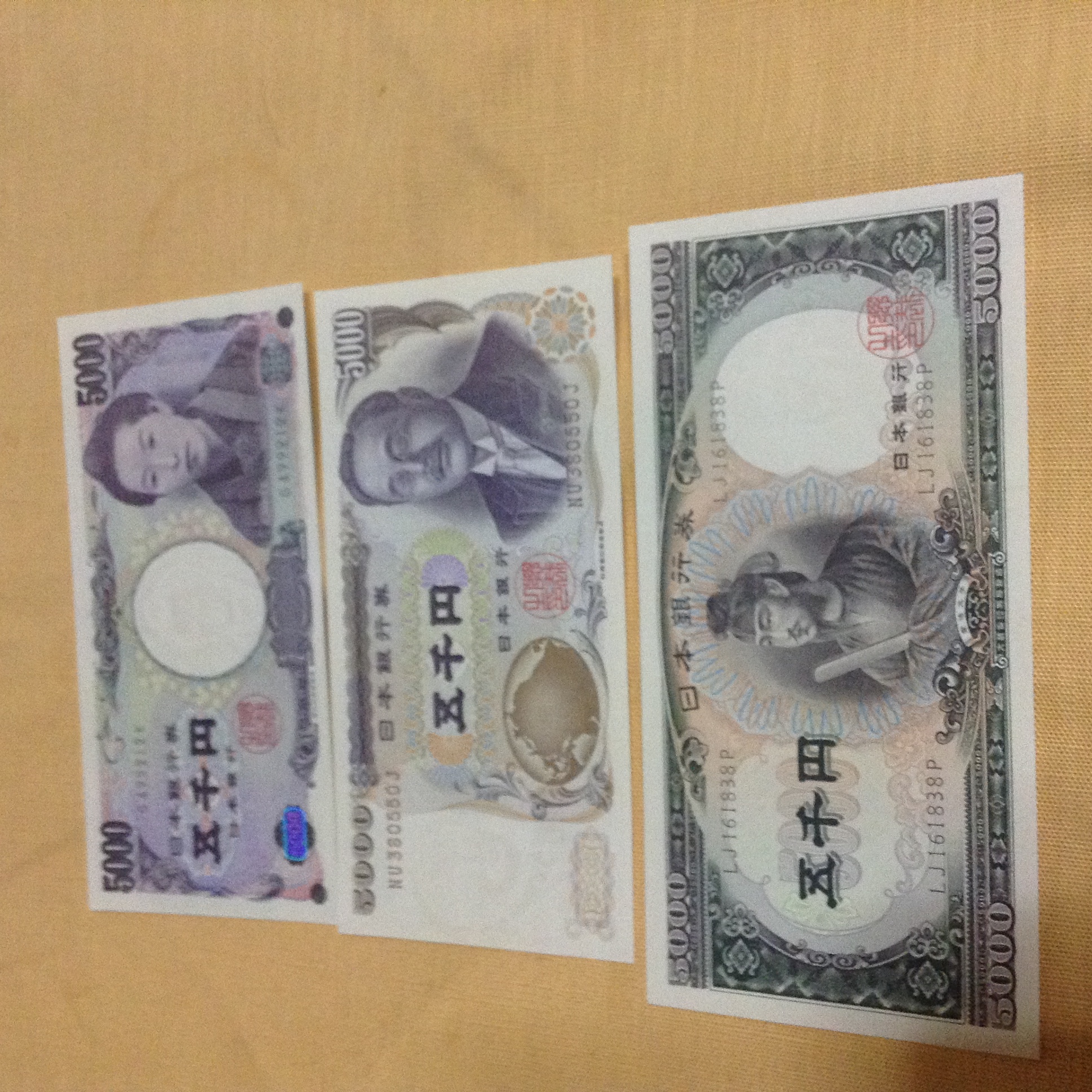 この前、デパガちゃんに500円札を見せられて、亡くなった母が確か箪笥に旧紙幣を取って置いたはず・・・、と、思い出しまして、探してみました。