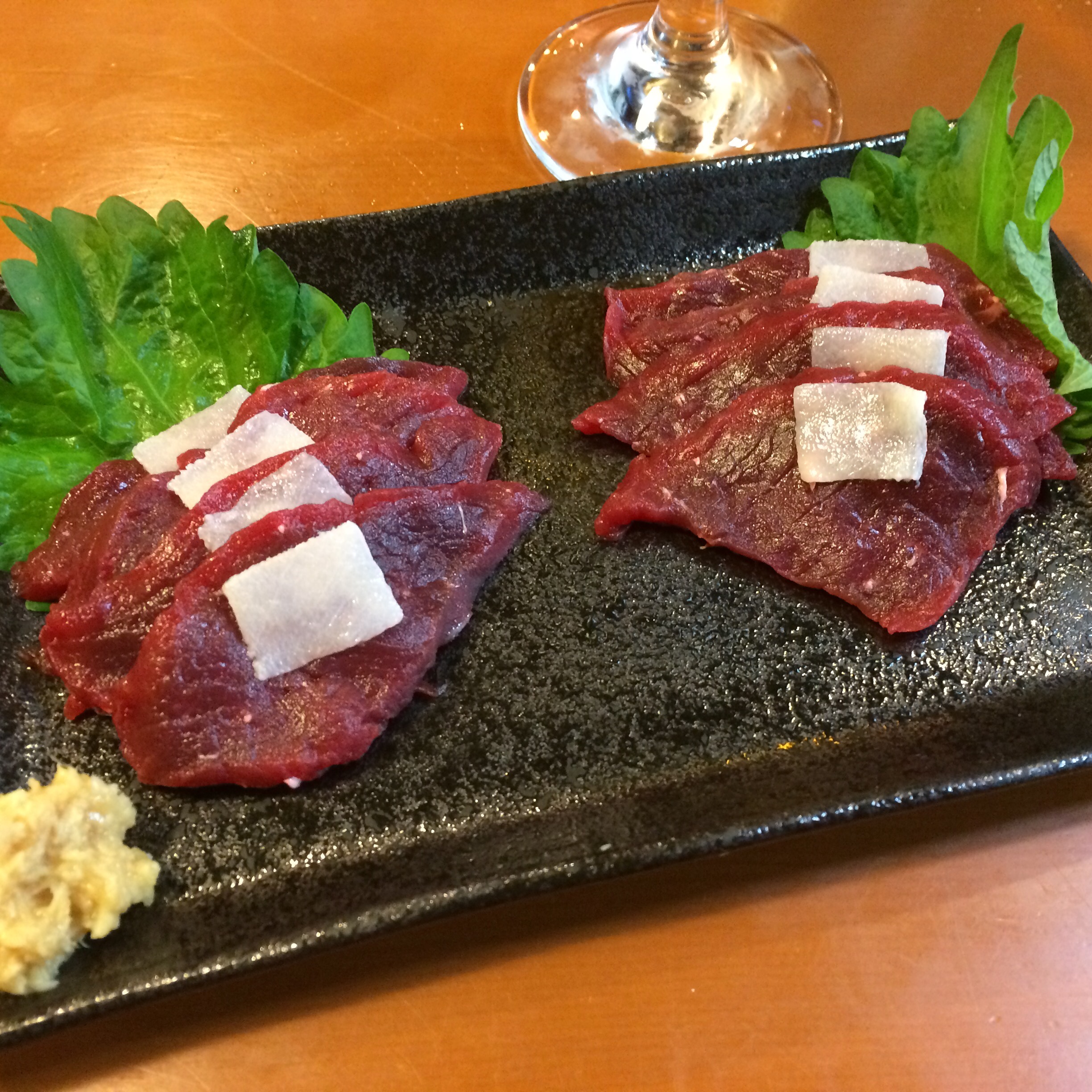 赤身と本皮のお刺身、本皮はお馬さんのタテガミ刺しみたいですね。