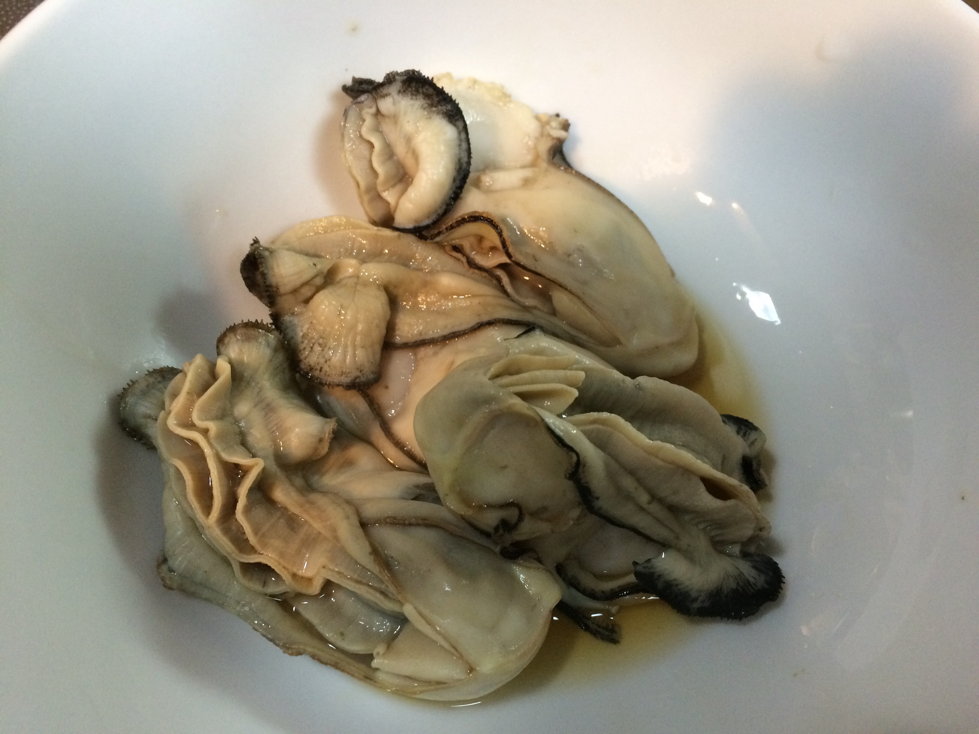 ・お汁で生牡蠣を半生に湯搔き、香りを移す
