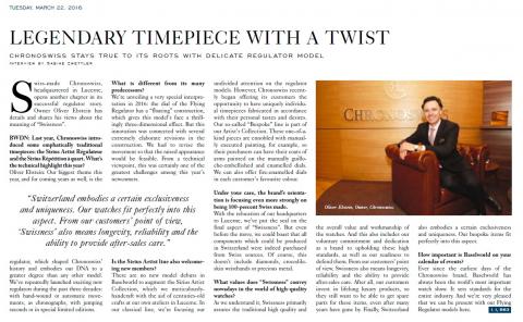 22日付のBASELWORLD DAILY NEWSに新クロノスイスCEOのインタビューが載って