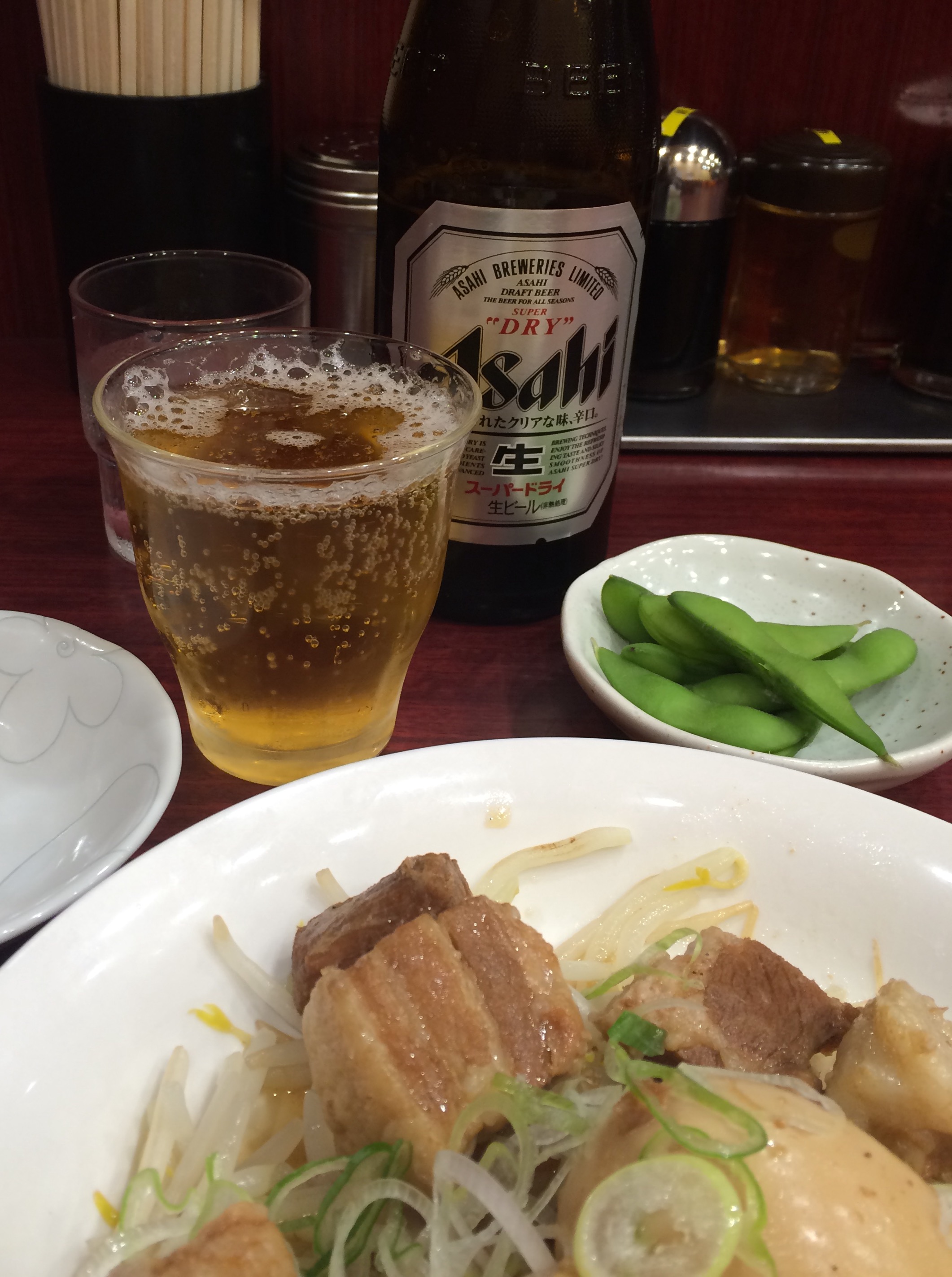ビールにラーメン 逝きたす、行きたす、、生きた酢。。。