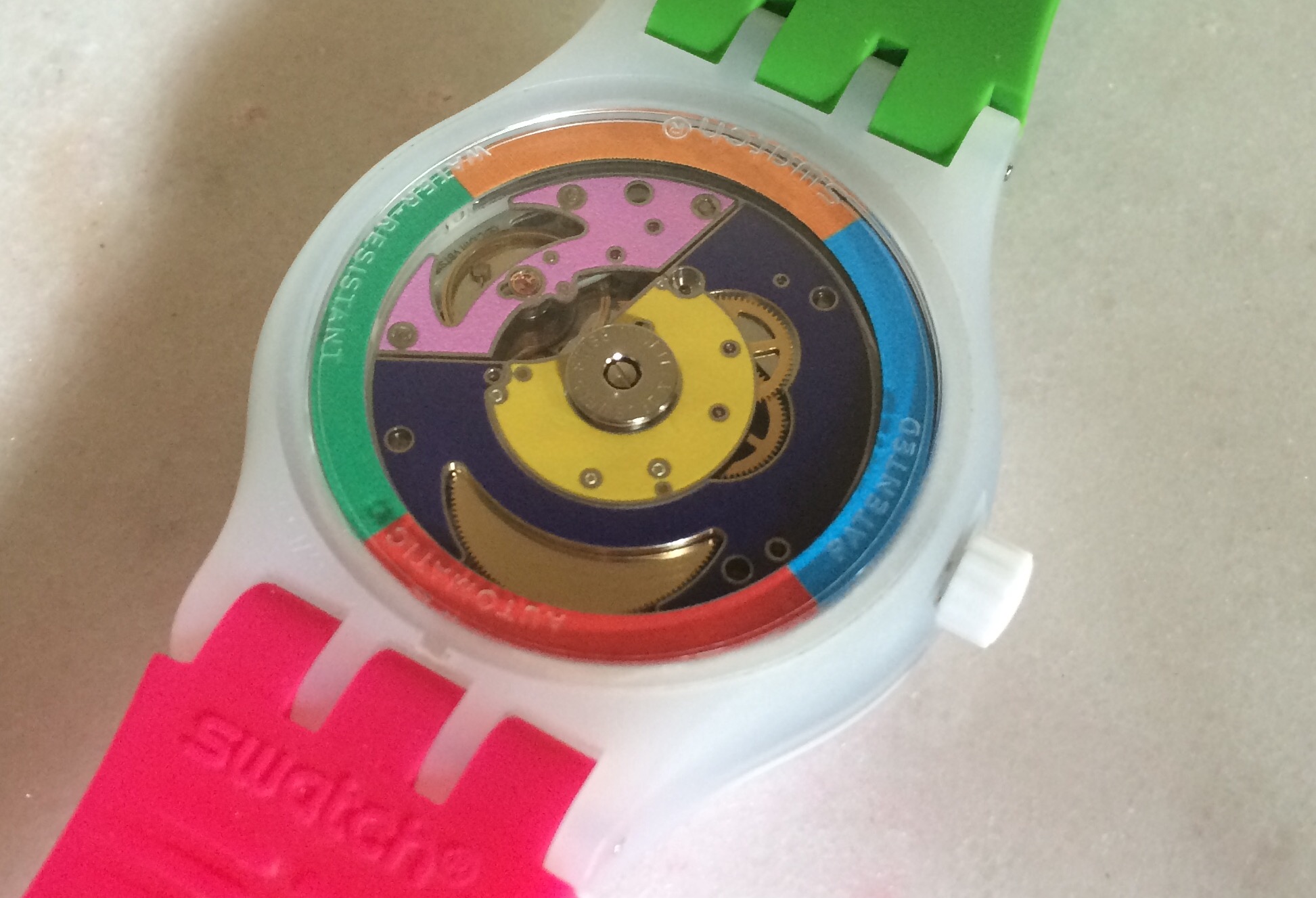 某グループの本部ビルに取材に行った時に、スウォッチ機械式のsistem51を見てきてください。カジュアルに遊べる時計としてオススメです。