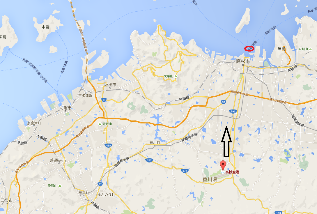香川県の空港、高松空港から飛来した室屋機は、赤丸で示した空域で多彩なアクロバットを行いました。