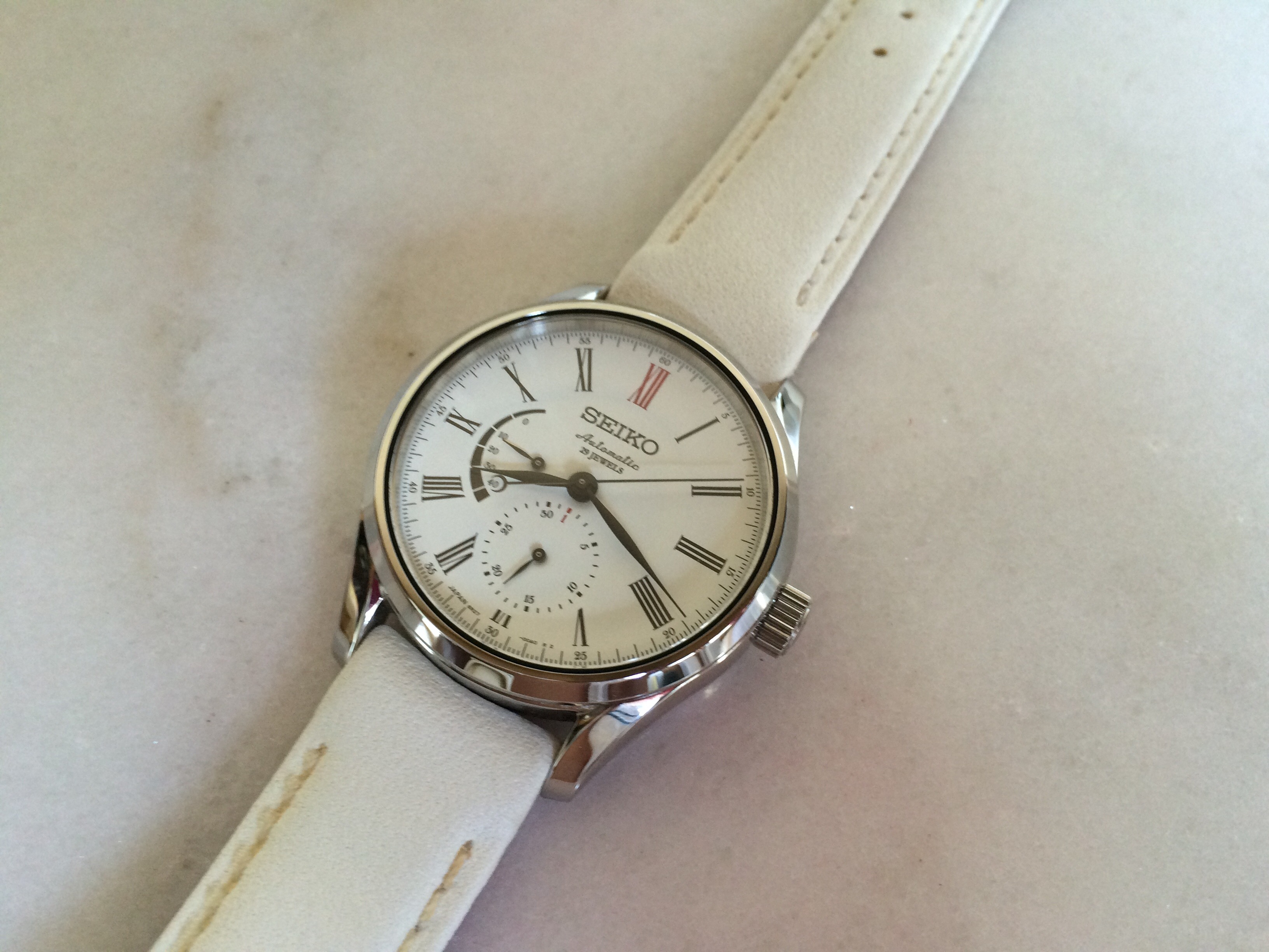 SEIKOさんには珍しい逆テーパーの大きめな竜頭で操作性良しです。