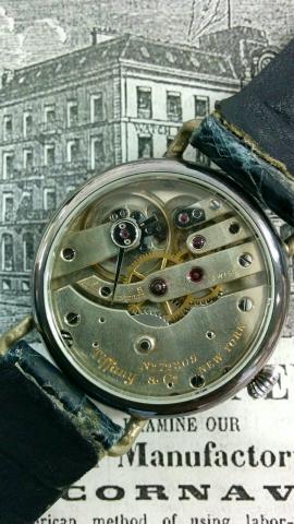 ケースはシルバーで以前ホールマークからそのあたりの年代だと特定しました。残念ながらティファニーの刻印はありませんでした。 現在はグラスバックにしてあります。