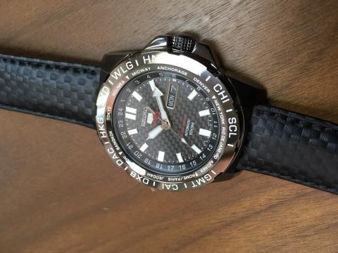 セラミックライクなGMTベゼルにカーボンライクな文字盤、