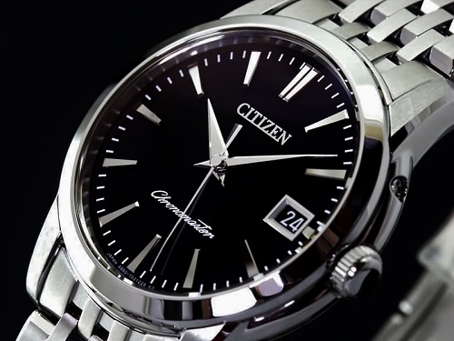 シチズンのロゴ以外、クロノマスターの筆記体ロゴだけのシンプルな黒文字