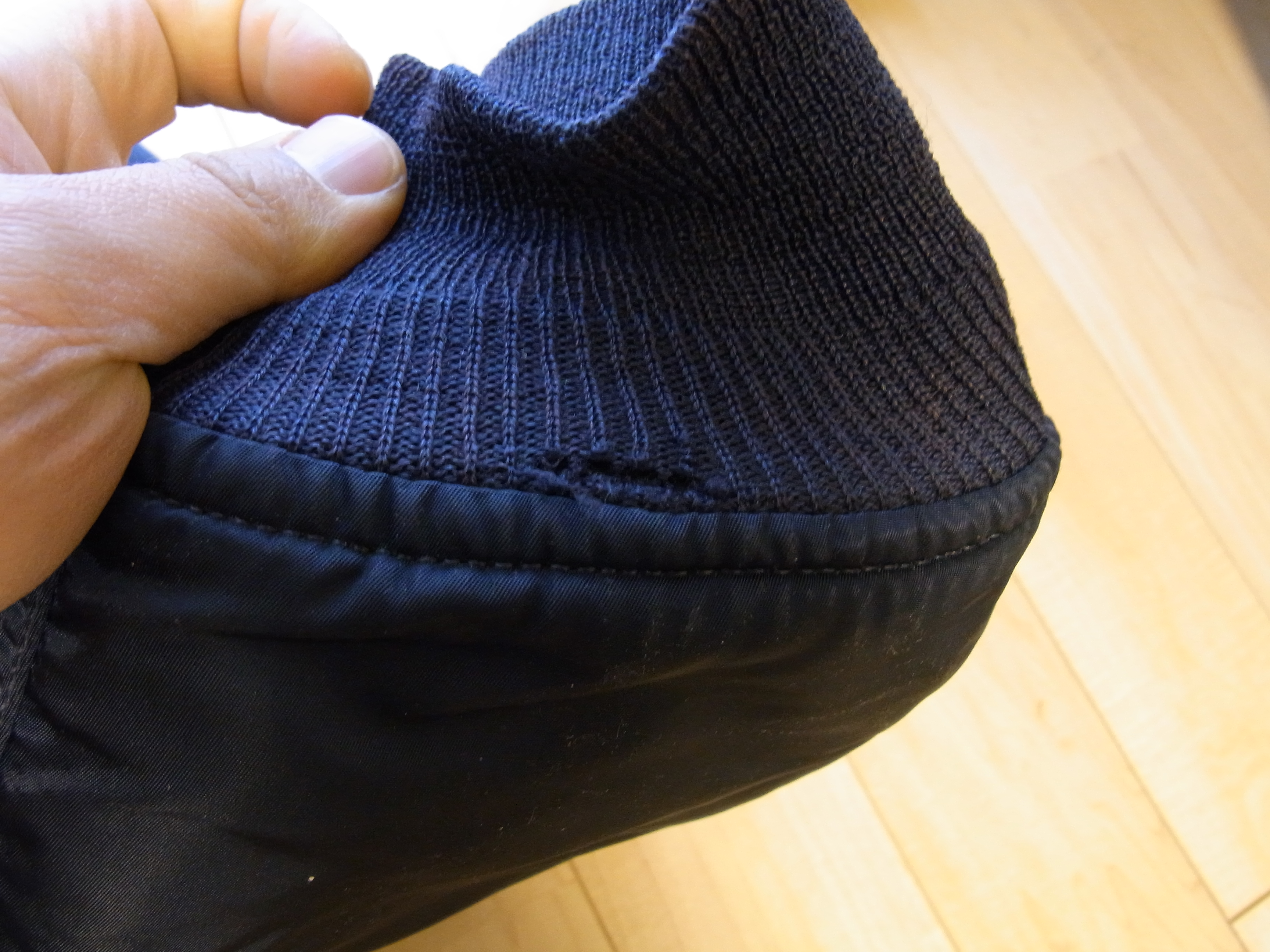 どちらも襟のリブの部分が劣化し、袖も破れて大変なことになってました。