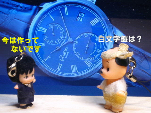 グラスヒュッテの店員さんが言ってましたが、青文字盤って、最近の流行りらしいですよ。