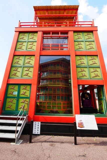 ③ 昼夜機輪(ちゅうやきりん)= 時刻を表示する5階建ての木塔