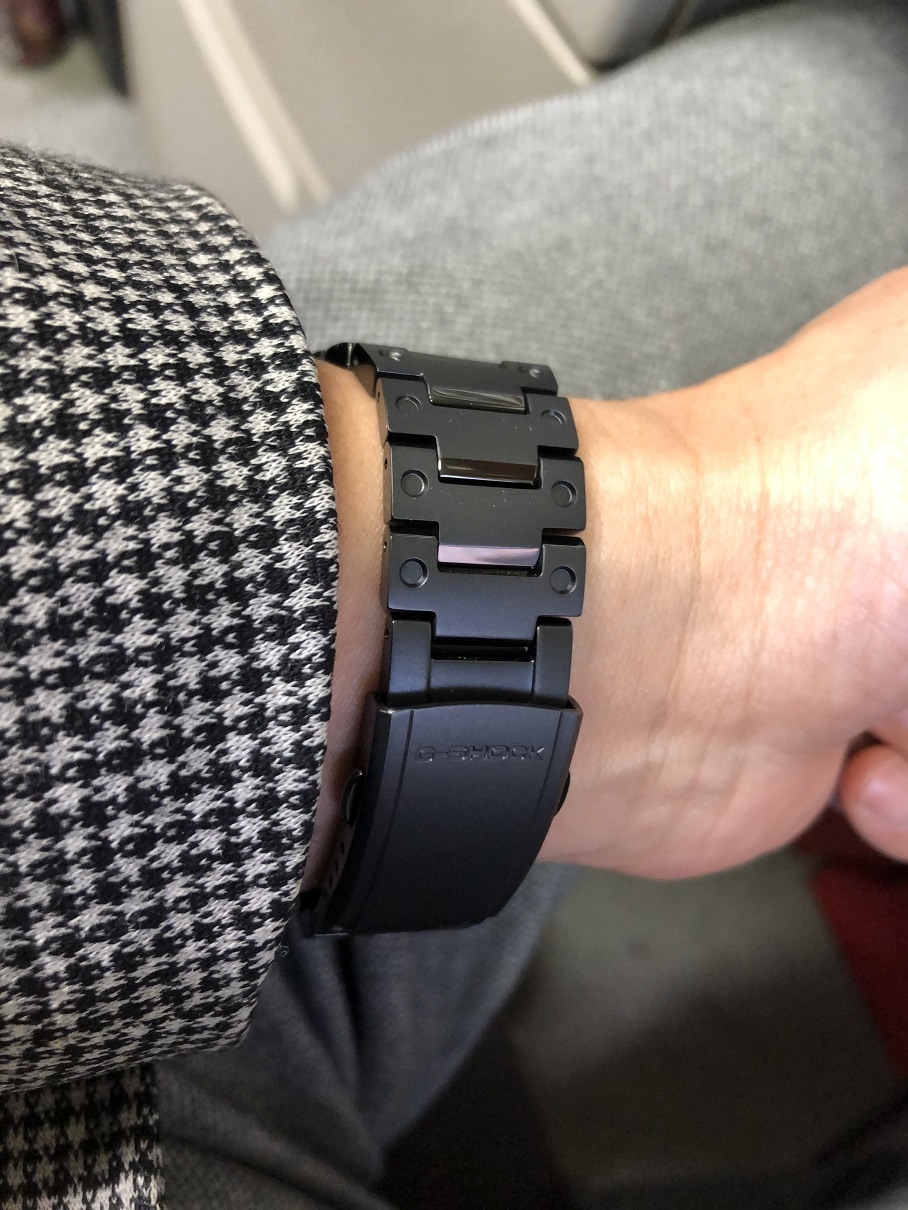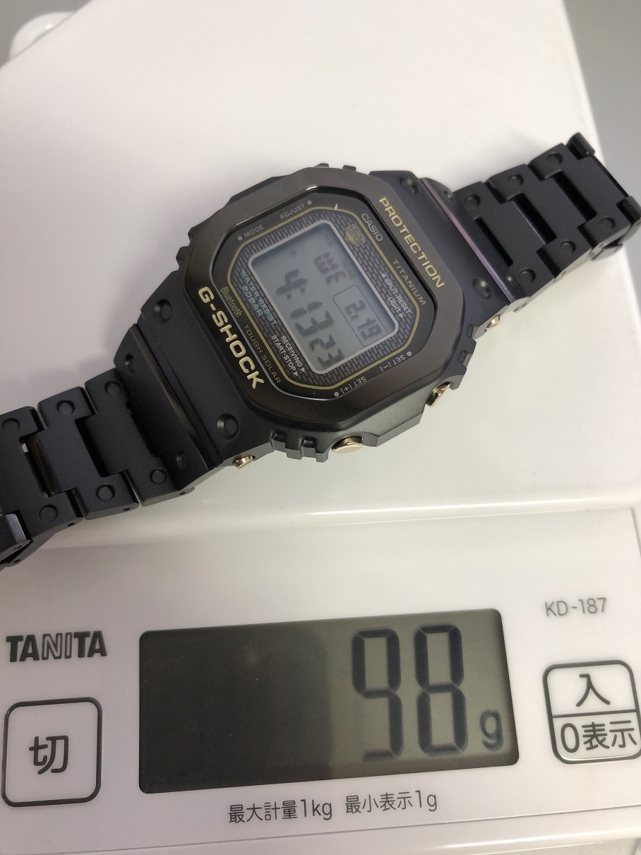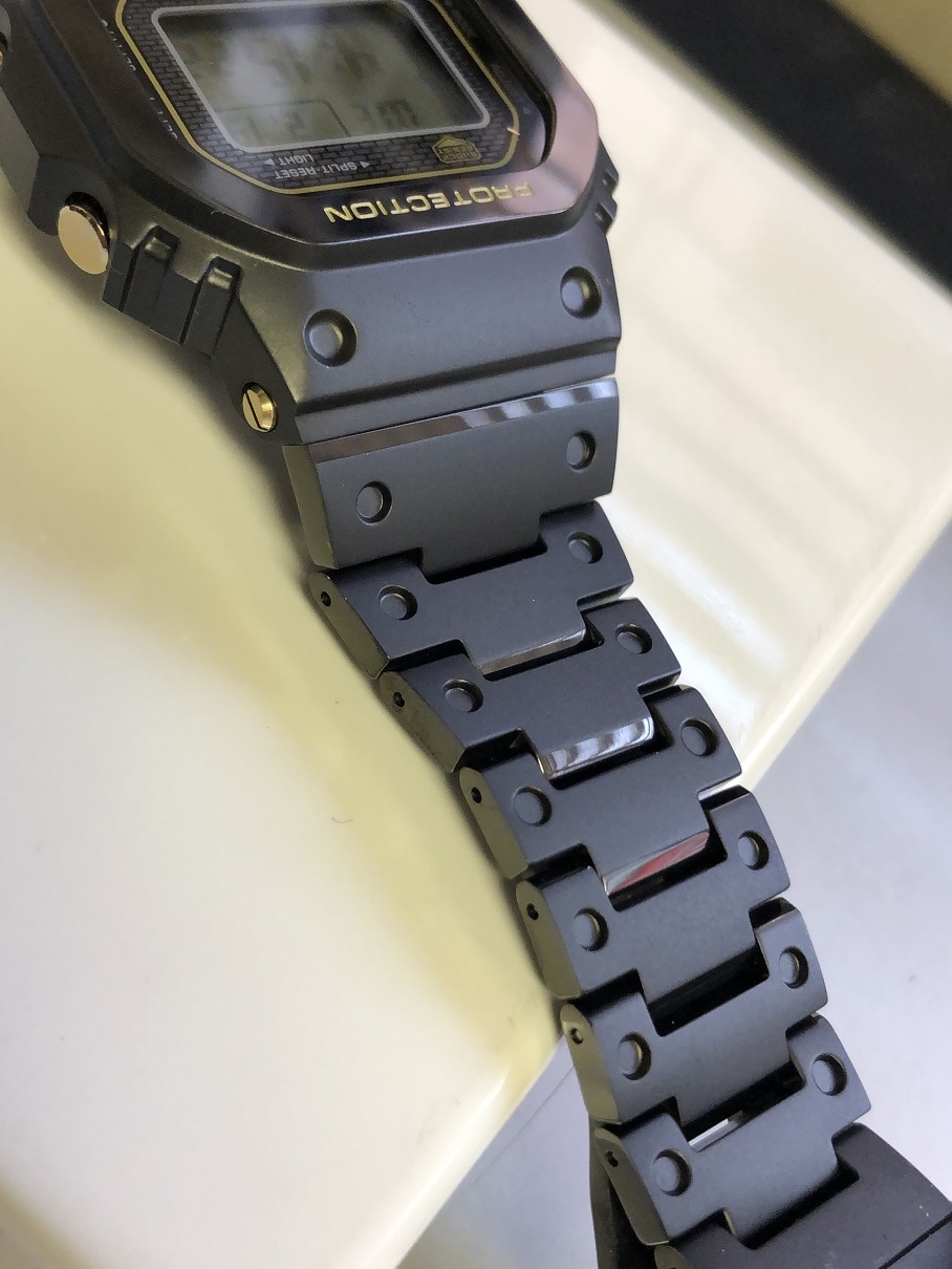 実物を初めて見ると、マット仕上げのチタンにブラックPVDの色合いがとても良く、ベゼルとブレスのサイド、駒のジョイント部がポリッシュされているので高級感があり、あきらかにSSモデルのブラックPVDとは別物なのが分かります。