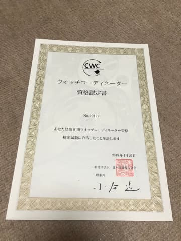 今回は、僕が昨年取得した、ウォッチコーディネーターという資格の事を書きたいと思います。