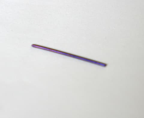 この針が出来た時は、色の変わり始めに火から下ろし、予熱でブラウンとバイオレットの中間にしてから、再度少しずつ火に掛けていって色を調節しました。まさかこんなに上手く行くとは思っていなかったので、温度が下がって色が確定した時は本当に驚きました。