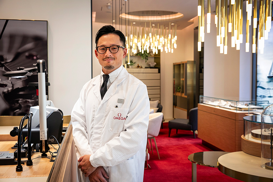 時計販売の増加を受けて、昨今はカスタマーサービスへのリクエストも多様化している。広がるニーズに対応するため、オメガは店舗でのサービスをさらに進化させている。なかでも注目すべきが「ブティックテクニシャン」と呼ばれる存在。彼らの活躍はアフターサービスを合理化し、カスタマーの利便性を大いに向上させる、新しいサービスのかたちだ。