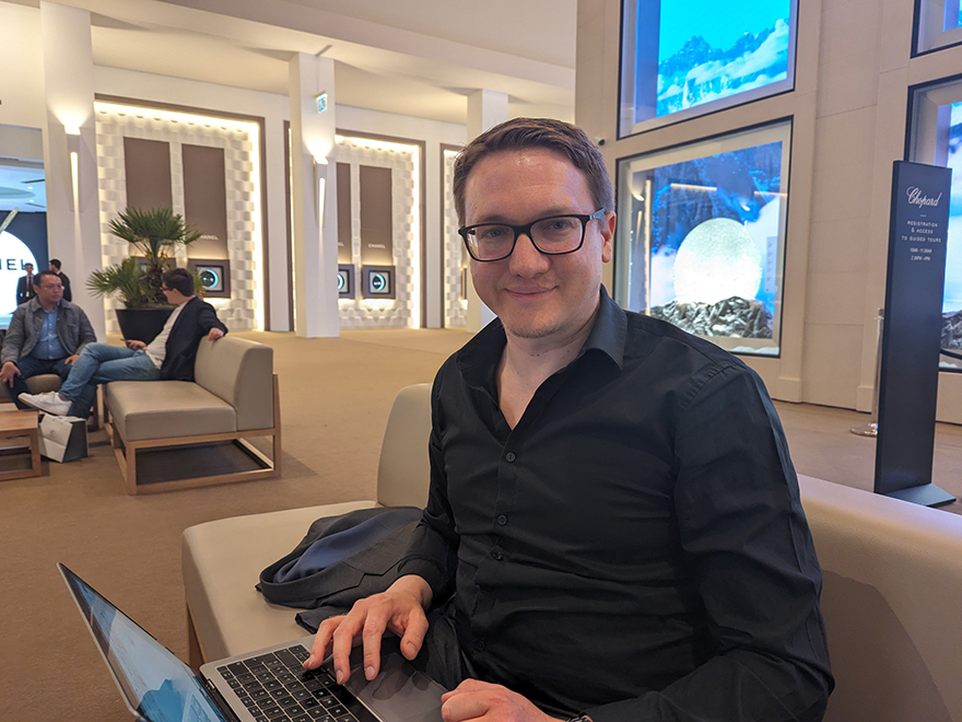 ウォッチズ&ワンダーズの会場に戻った後、ヨーロッパスターの取材を受ける。発行人たるセルジュ・メイラードさん自ら参上。日本の時計業界について、めちゃくちゃ長く話す。「今、スイスの時計産業は、とりわけラグジュアリーのセグメントで敵がいない。競争は必要で、日本やドイツ、フランスなどはコンペティターになり得るだろう」と伝えた。