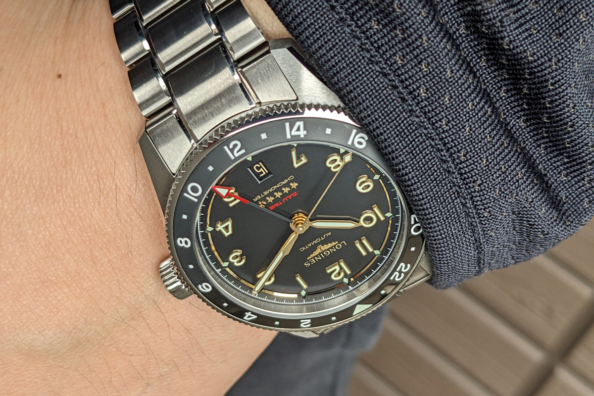 今回レビューを行った、「ロンジン スピリット Zulu Time」の2024年新作モデル。パイロットウォッチに範を取ったダイアルを特徴とするGMTウォッチだ。