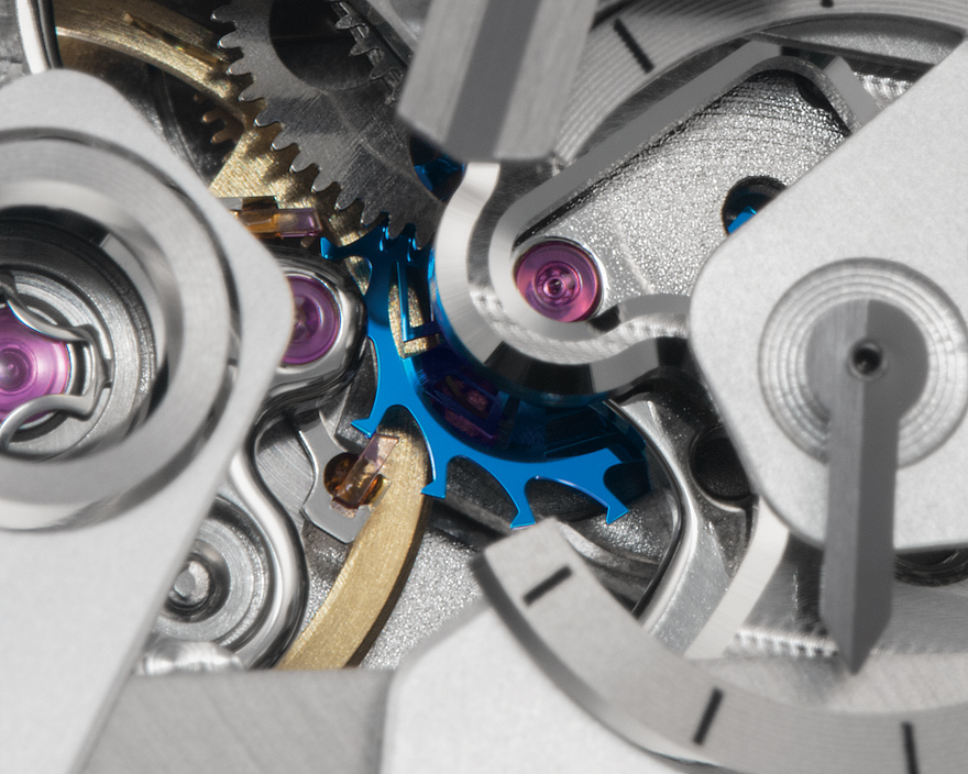 ムーブメントは、シリコン製ガンギ車を持つCal.F8N64を搭載する。約60時間のパワーリザーブを備えており、ケースバックから、ローターやテンプの動きを見ることができる。