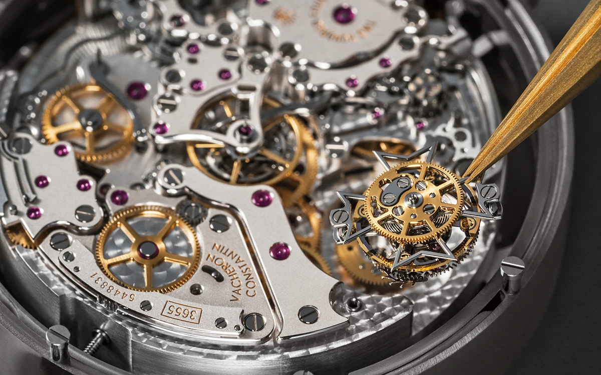 手巻きのベースムーブメント部分には、トゥールビヨンとスプリットセコンドクロノグラフ、そしてウェストミンスターカリヨンを備えたミニットリピーターが備えられ、この新しいストライキング機構だけで7件の特許が盛り込まれている。
