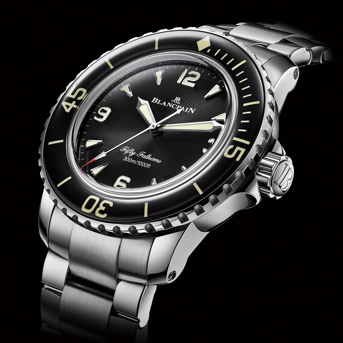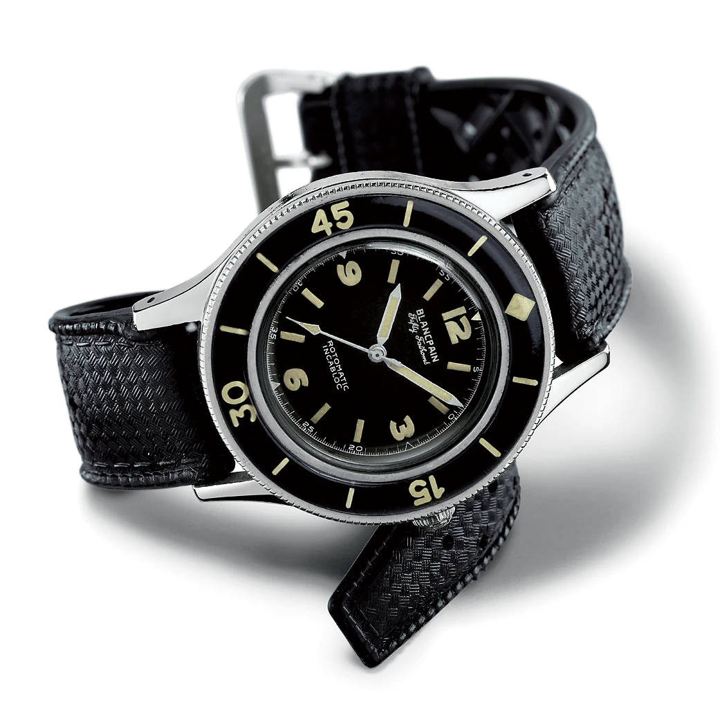 深海を目指すダイバーたちから厚い支持を得るブランパン。高機能なダイバーズウォッチをいち早く打ち出した先駆者であり、今なお着実に進化を続ける真の実力派である。そのアイコンが1953年に誕生した「フィフティ ファゾムス」だ。頑丈な二重シールのリュウズ、ロック機構付き回転ベゼルなど、その装備は現代的なダイバーズウォッチのお手本となっている。モデル名は当時の潜水限界深度である50ファゾム(約91.45m)に由来する。開発にまつわる数々のエピソードは、すなわちこの腕時計のロマンであり、ファンを魅了し続ける大きな要因となっている。
