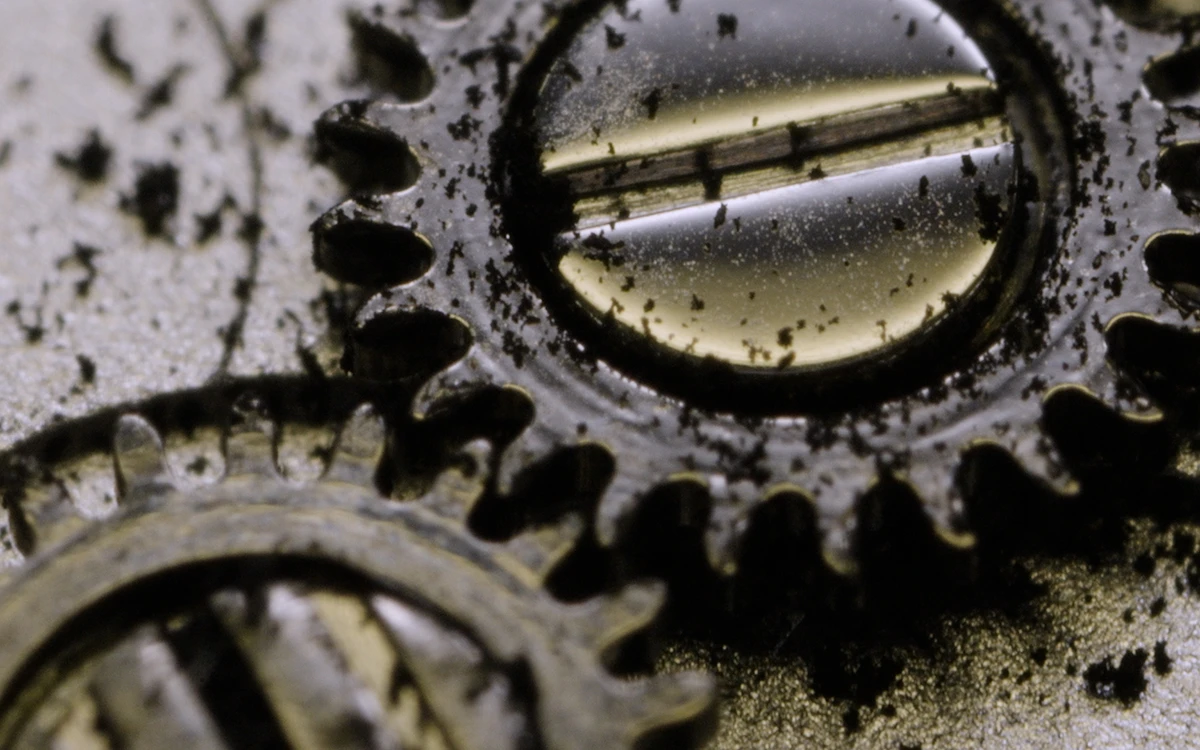 かといって、ムーブメントの厚みもない腕時計の大きさでかつ、90度噛み合いの負荷を軽減するような特殊な歯車を製作するのは、技術的とコストのバランスから、かなり困難である。歯先や形状に工夫が見られる時計は増えてきているように思うが、ダメージの蓄積速度を抑えるに留まっている。