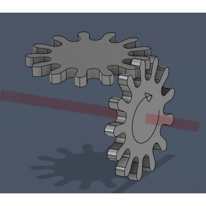 上で見たような歯の変形がなぜ生じるのかを考えるためには、この歯車の振る舞いを知らねばならない。このパーツは、キチ車(winding pinion)と呼ばれ、巻き上げにかかわるパーツのひとつだ。私たちが操作するリュウズと回転方向が同じ、数少ない歯車のひとつ。このパーツの特徴は、それと噛み合う歯車と90度の関係であること、つまりふたつの歯車の回転軸は直角をなす。