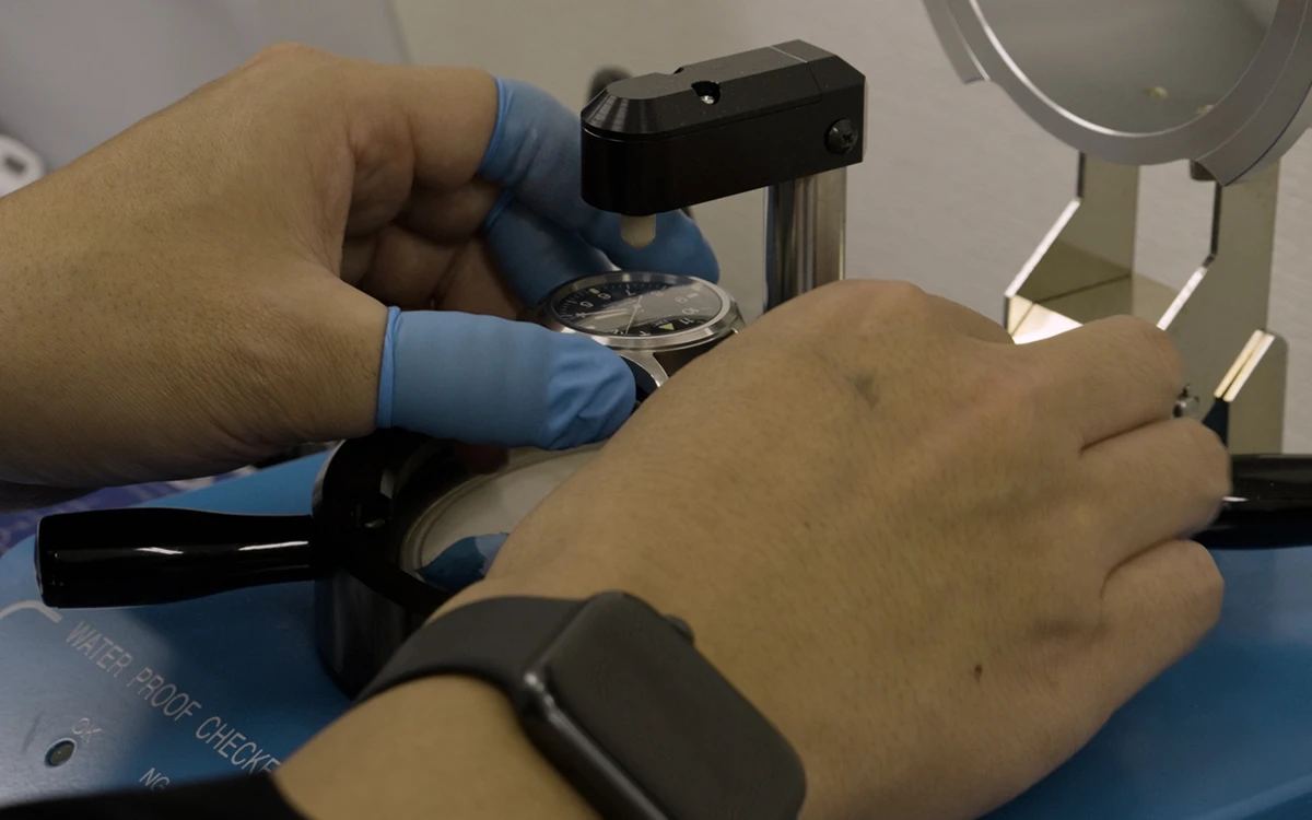 最初に、防水不良である可能性を考える。そもそも防水試験を行ってよい状態か、裏蓋はどのように開けるのか、そもそも開けていいのか。そんなことまで考える必要あるのかと思うかもしれないが、最も基本にして最も大事な要素のひとつなのだ。