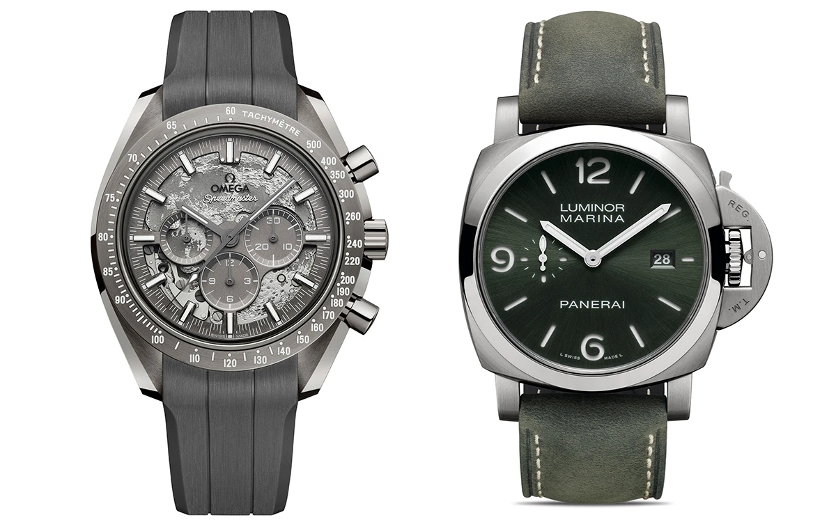 手巻き(Cal.3869)。26石。2万1600振動/時。パワーリザーブ約50時間。セラミックケース(直径44.25mm、厚さ12.97mm)。50m防水。各232万1000円(税込み)。(問)オメガ Tel.0570-000087