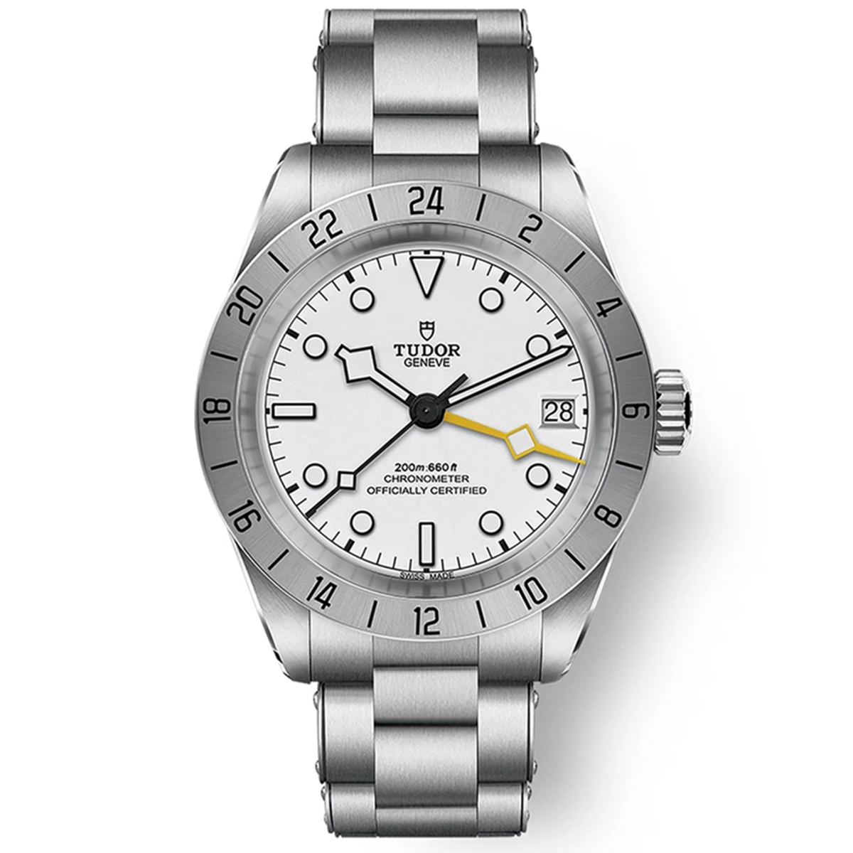 チューダーは「ブラックベイ プロ」において、ツールウォッチのDNAと現代的な実用性を融合させた。39mmのステンレススティール製ケースに組み合わされたのは、オパラインの文字盤だ。ブラックの縁取りを施したインデックスとの強いコントラストにより、高い視認性を実現している。