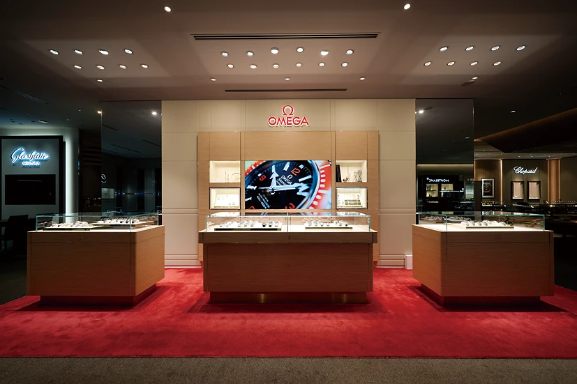 ISHIDA表参道が取り扱っているのは、時計だけでも実に35ブランド。ここに紹介するカルティエやオメガ、パネライ、ショパールといったメインブランドはブースを構え、またG-SHOCKについては、全国に7店舗しかないコンセプトショップで、限定品も数多く扱う「EDGE」を展開するなど、時計愛好家から入門者まで、来店客の要望に幅広く応えられる店舗になっている。