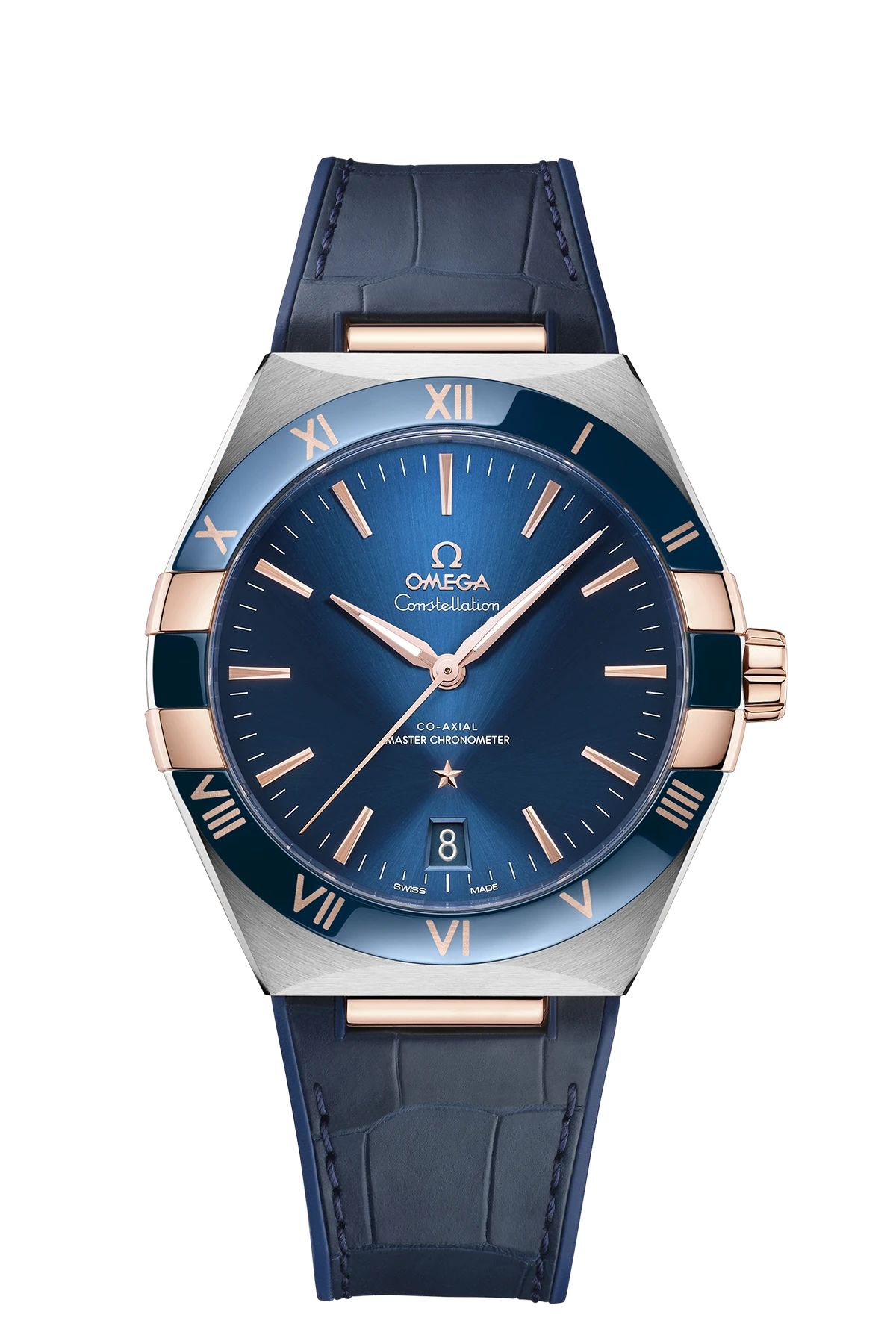 今回、鍵山がセレクトしたのは、深いサンブラッシュ仕上げのブルーが目を奪う「コンステレーション マスター クロノメーター41mm」だ。「直観で選びました。自然や星など綺麗なものが好きなので、星座という名のこの『コンステレーション』は自分にぴったりだと思いました」——その言葉通り、ベゼルの爪や針、インデックスに宿るセドナゴールドのアクセントは、星屑が散りばめられたかのように華やかに輝く。オメガ コーアクシャル マスター クロノメーター Cal.8900を搭載した精緻な機構と、氷の上で完璧を追い求める鍵山の眼差しが、静かに重なり合う。