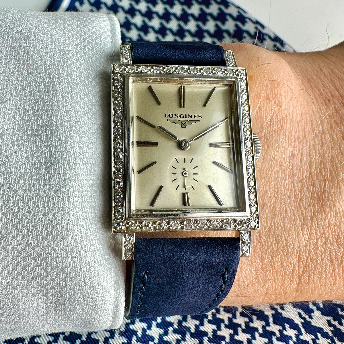 しかし、当時はまったく事情が異なっていた。特に北米には、男性がダイヤモンドウォッチをたしなむ長い伝統がある。今でこそ宝石がキラキラと輝く腕時計といえば、音楽業界やエンタメ界の象徴という印象が強いが、1950年代から1960年代にかけては、地位を確立したビジネスマンが成功の証としてこれらを身に着けていたのだ。そして、真に頂点へと登り詰めた者が手にする究極の1一本が、このロンジンのシグネットだったのである。