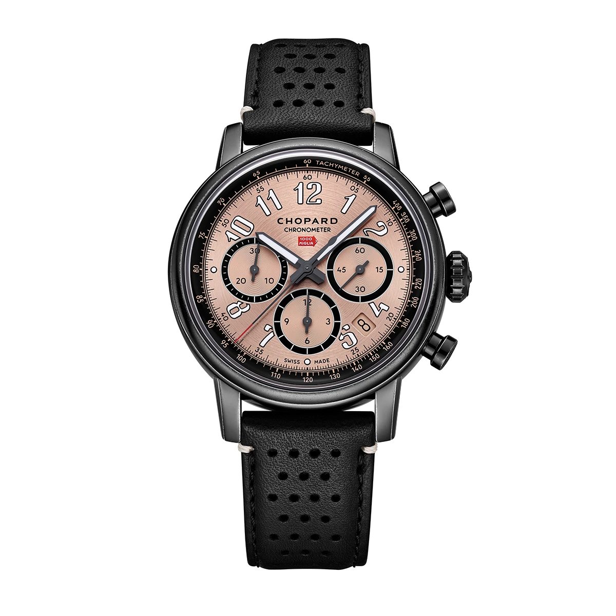 ショパール共同社長のカール-フリードリッヒ・ショイフレとクラシックカーレース、ミッレ ミリアとのつながりを象徴する「ミッレ ミリア」コレクションにも「装い」の観点から注目すべきモデルが登場した。