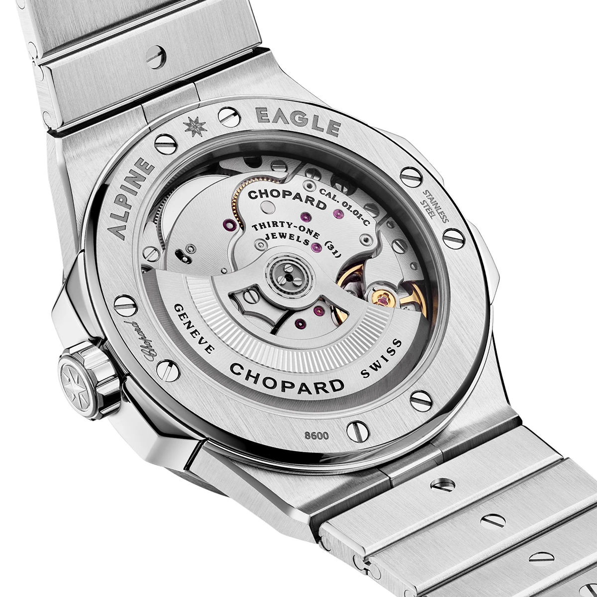 自動巻き(Cal.Chopard 01.01-C)。31石。2万8800振動/時。パワーリザーブ約60時間。ルーセントスティール™ケース(直径41mm、厚さ9.75mm)。100m防水。予価242万円(税込み)。