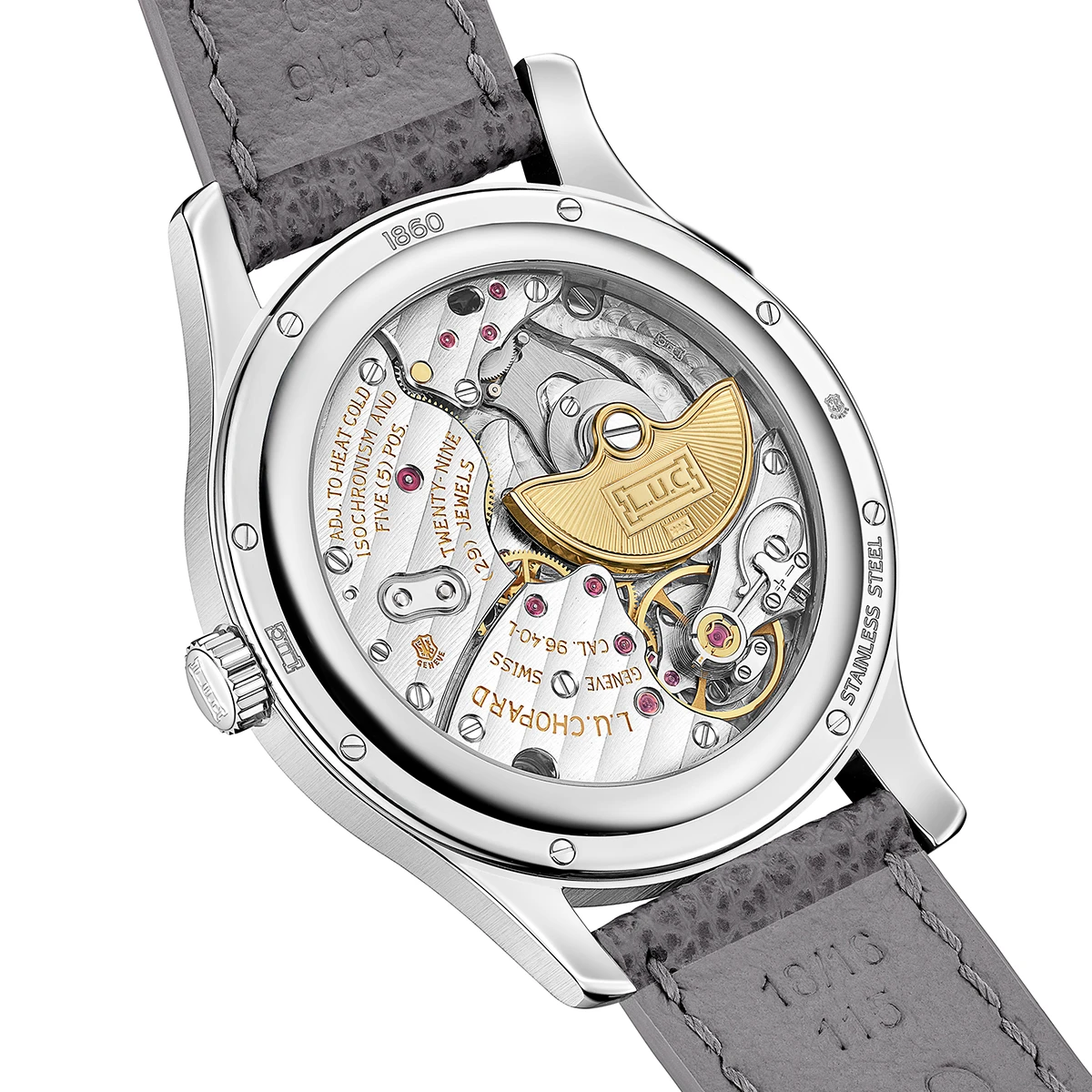 自動巻き(Cal.L.U.C 96.40-L)。29石。2万8800振動/時。パワーリザーブ約65時間。ルーセントスティール™ケース(直径36.50mm、厚さ8.20mm)。30m防水。予価421万3000円(税込み)。