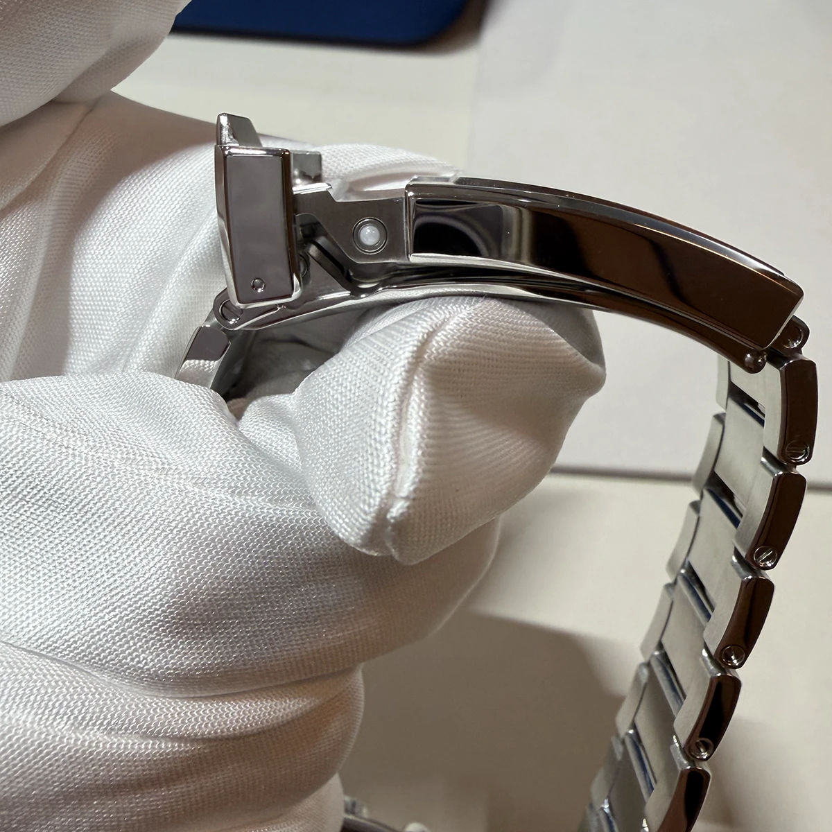 新型バックル。めちゃくちゃ良くなっとるやんけ!!! 特許取得のフォールディングバックル「ZENCLASP™」が搭載されており、工具なしで微調整が可能に。ZENCLASP™は操作しやすく、引っ掛かりなどなし。微調整機構を搭載しているにもかかわらず、薄型。また、角が落とされて、工具で調整するための穴が廃されたことから、高級感がいや増している。しかも留め具を外すと、ワンタッチでパカっとバックルが開く。