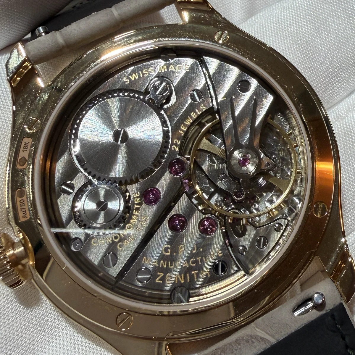 また、昨年話題になった復刻Cal.135を搭載したG.F.J.が、18Kイエローゴールドモデルで登場。こんなん良いに決まってますやん。