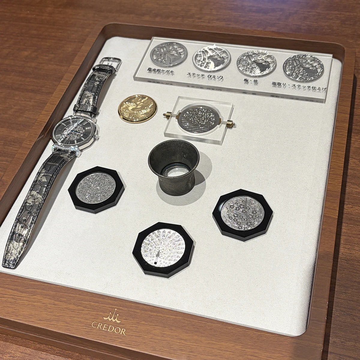 セイコーウオッチが国産ドレスウォッチブランドとして展開するクレドールは、2026年に初めてウォッチズ&ワンダーズ ジュネーブに出展した。そのため今回の出展では、世界にクレドールを認知させることがひとつの目的となる。ブースは国内のクレドールサロンで採用されている内装をベースに、新作時計のほか、「叡智II」や「ゴールドフェザー」といったコレクションの数々が並べられる。まだ少ないとはいえ、日本であればクレドールサロンである程度のモデルは見ることができる。しかし海外展開は十分とは言えず、海外の時計愛好家にとって、これだけのクレドールの製品を観賞できる機会というのは、貴重なものとなるだろう。
