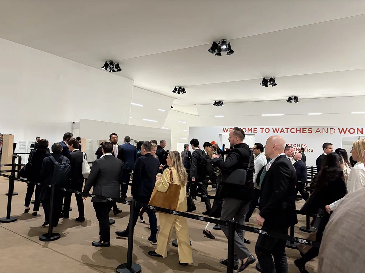 ジュネーブ空港に着いたら、昨日と同じく会場まで徒歩で向かう。さすがに今日は迷わず、スムーズに到着した。エントランスに入ると、昨日よりも明らかに来場客数が増えている。取材のアポイントメントを取っていた時、「4月16、17日は結構満席の枠が多いんですよ」とブランドが言っていたので、一般公開日はまだとはいえ、後半に進むにつれ来場客が増えるのかもしれない。