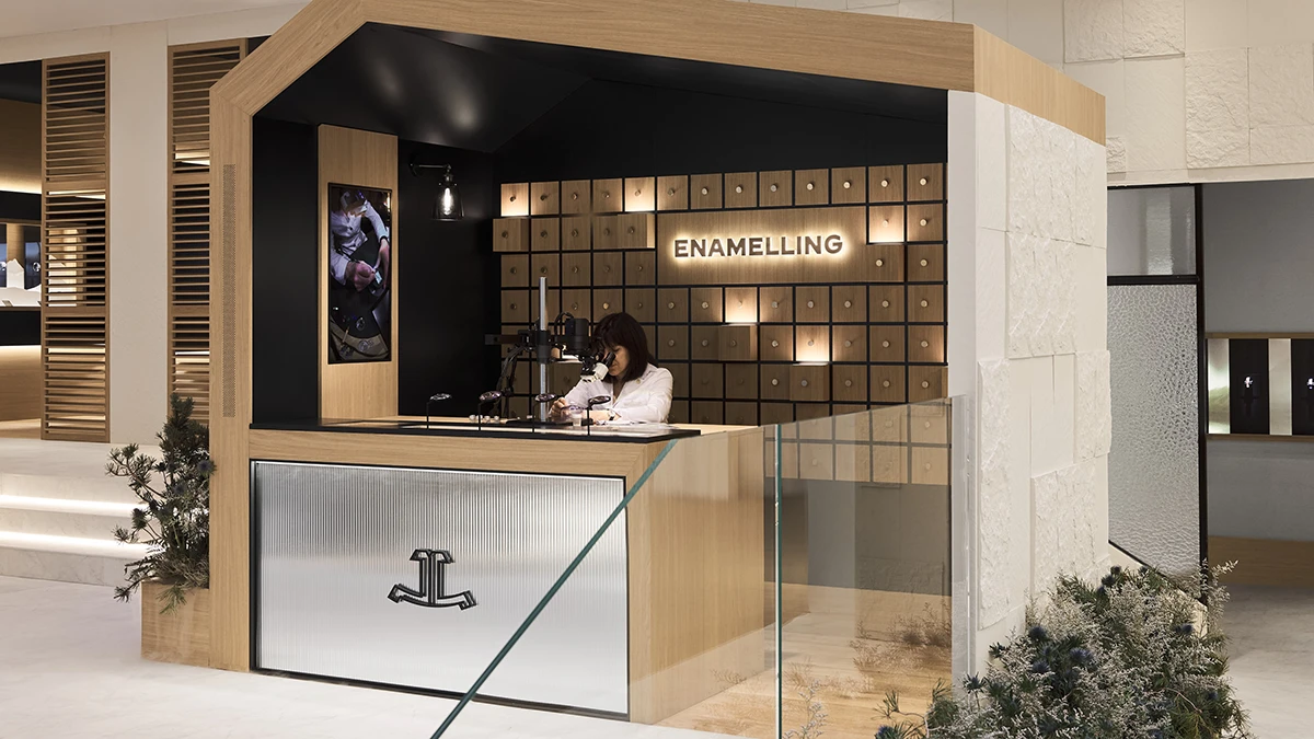 この日の最初の取材はジャガー・ルクルトのブースツアー。タッチ&フィールで新作時計はすでに見ていたが、ブースをゆっくり見て回ってはいなかった。解説を聞いているうちに、時計製造技術にとって、そしてジャガー・ルクルトにとって歴史的な地となるスイス・ジュウ渓谷の世界観を取り入れたこのブースは奥深く、また、この地で培われた、同ブランドのこれまでとこれからのクラフツマンシップに触れることができた。