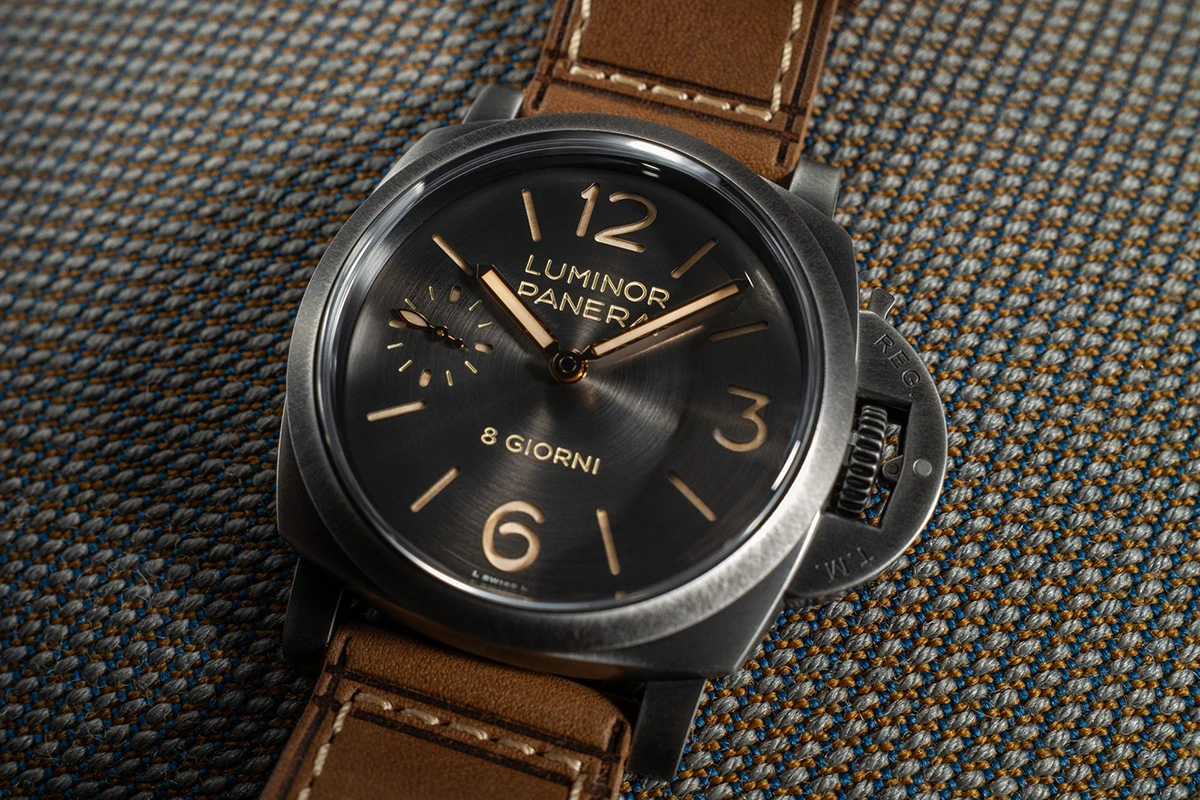 時計業界において、ケースの仕上げ方法は実はそれほど多くない。通常、その違いはデザインにおける実行と適用のされ方に現れる。パネライの珍しい「ブルニート」仕上げがこれほどまでに魅力的な理由はそこにある。この仕上げはパネライのキャラクターによく合致しており、高級感を保ちながら、同時に無骨なツールウォッチのルックスを見事に表現している。