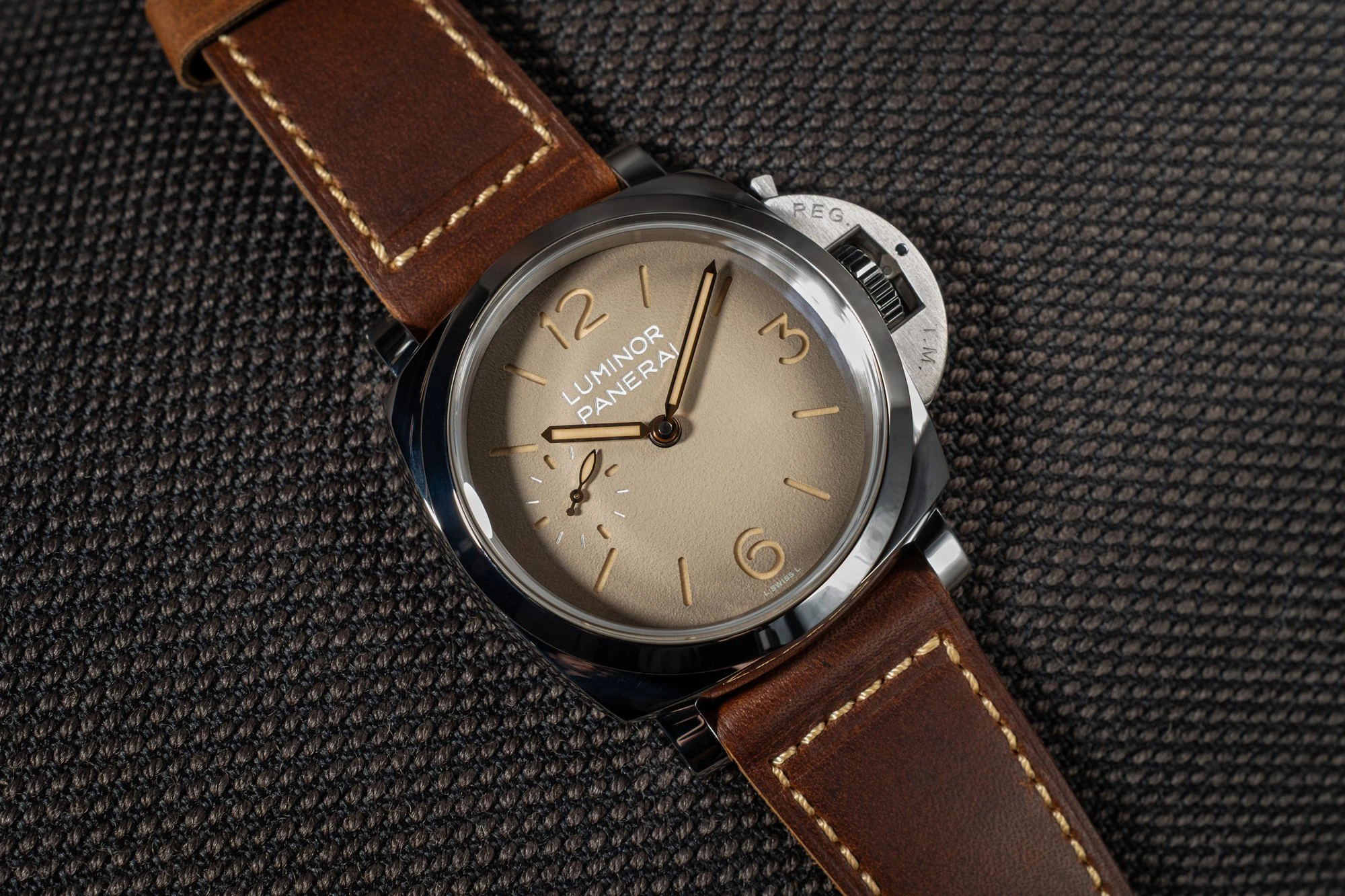新作には、約3日間のパワーリザーブを備えた存在感のある47mmモデルと、44mmモデルが含まれている。中でも我々にとって最大のハイライトと言えるのが、「ブルニート(Brunito)」仕上げを施した新モデル、Ref.PAM01733である。