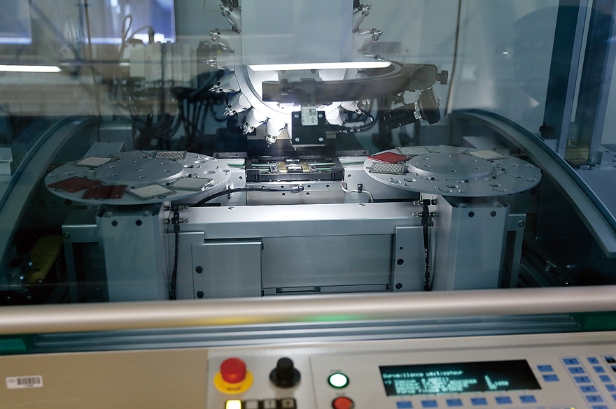 現在この機械は、スイスの主立った時計メーカーに納入されている。主立ったメーカーは、タグ・ホイヤー、ゼニス、ブライトリングなどだ。とりわけタグ・ホイヤーのシュヴネ工場は、30台近いモデューロを持ち、理論上は10万個のムーブメントが製造できる体制を持っている。タグ・ホイヤーの関係者曰く、理論上の穴開け精度は2ミクロンと言うから、加工精度も極めて高い。もっとも、切削油を使わずに部材を削るモデューロの生産性は、スイスの関係者が言うほど高くはない。しかし洗浄プロセスが不要で、一度治具にセットするとほぼ全自動で加工ができる点を、関係者たちは生産性が高いとみなしているのだろう。
